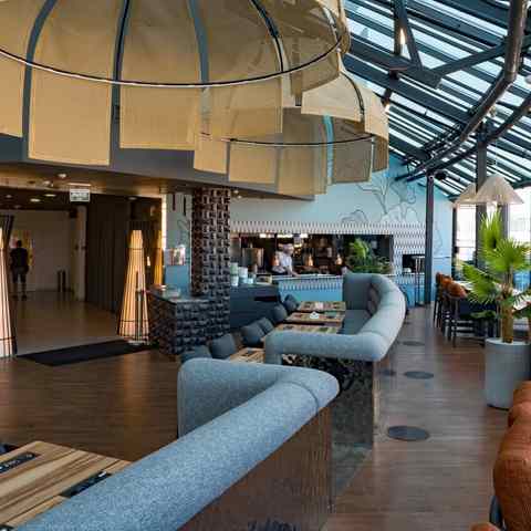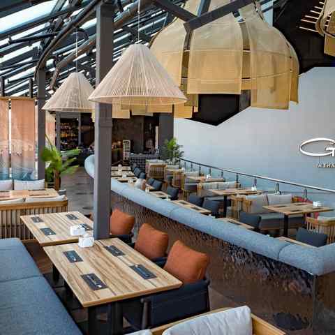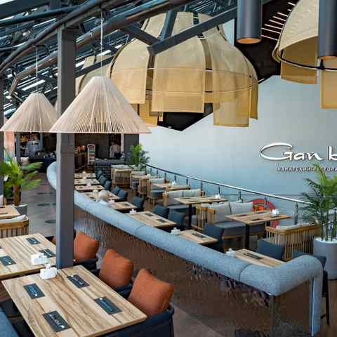 Ресторан Gan Bei (Ган Бей) радует посетителей стильным и продуманным дизайном. Интерьер выполнен в гармоничных тонах с использованием современных материалов и деталей, передающих дух Азии. Уютные зоны с мягкой мебелью, элегантные подвесные светильники и экзотические растения создают атмосферу, которая настраивает на отдых и наслаждение.