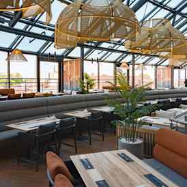 Ресторан Gan Bei (Ган Бей) радует посетителей стильным и продуманным дизайном. Интерьер выполнен в гармоничных тонах с использованием современных материалов и деталей, передающих дух Азии. Уютные зоны с мягкой мебелью, элегантные подвесные светильники и экзотические растения создают атмосферу, которая настраивает на отдых и наслаждение.
